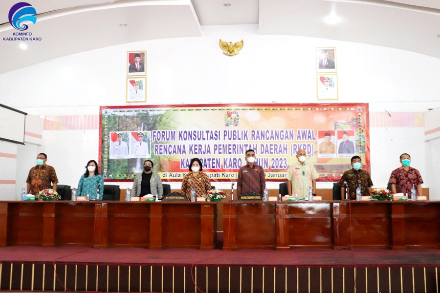 KARO, INFOPARLEMEN.COM – Bupati Karo Cory S Sebayang dan Wakil Bupati Karo Theopilus Ginting menhadiri dan sekaligus membuka Forum Konsultasi Publik Rancangan Awal Rencana Kerja Pemerintah Daerah (RKPD) Kabupaten Karo Tahun 2023 di Aula Kantor Bupati Karo, Kaban Jahe, Kamis (20/01/2022).