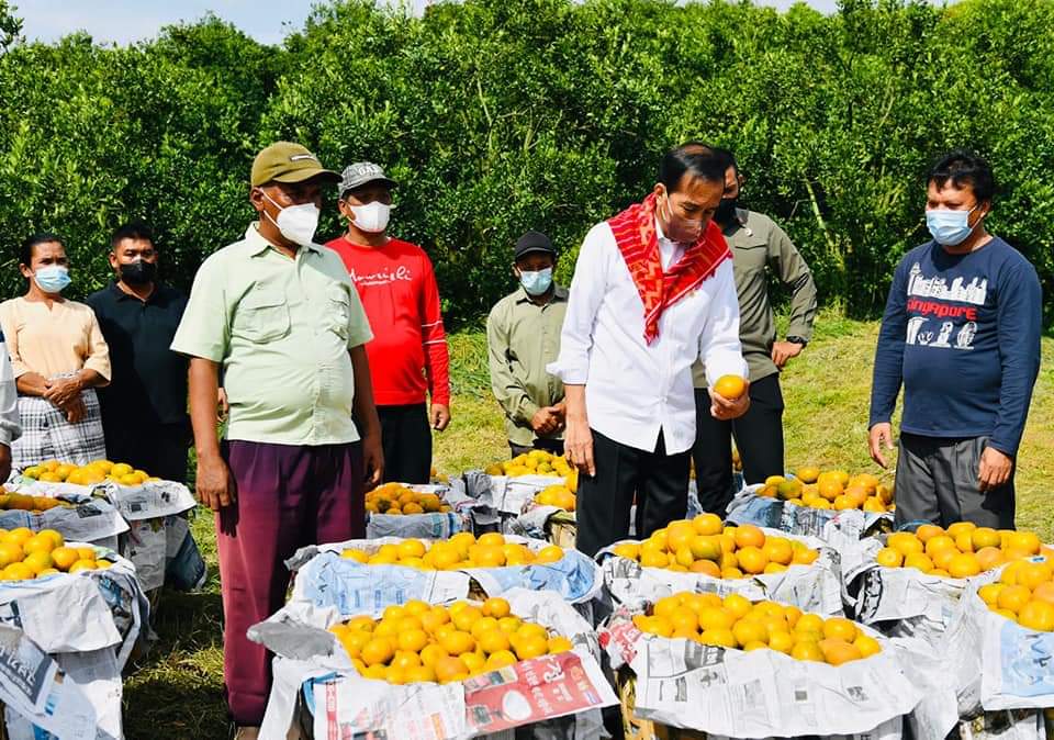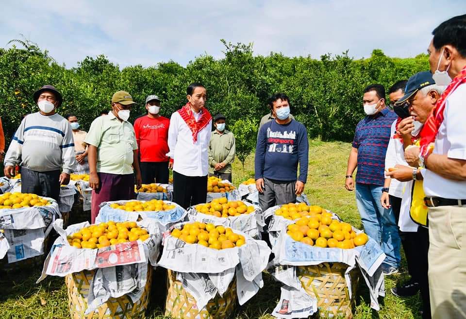 Saat melihat hasil produksi jeruk di Kabupaten Karo, Presiden Jokowi sempat menelepon Menteri Pertanian Syahrul Yasin Limpo. Presiden mendorong dua hal, yakni pendampingan bagi para petani dan pupuk.