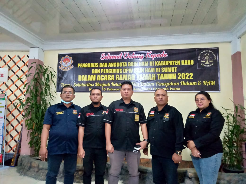 Ramah tamah yang mengusung tema Solidaritas adalah kekuatan kita dalam menegakkan hukum dan HAM, dihadiri oleh jajarran Pengurus DPD Bain HAM RI Kabupaten Karo, yaitu Ketua Tekwasi Sinuhaji, Bendahara Dewi Arum Br Purba, Marlon Berahmana dari Keanggotaan Kaderisasi, Ketua Bidang Pemuda dan Olah Raga Jepri Sitepu, Ketua Bidang Investigasi dan Advokasi Rianto Ginting, Matius Kemit Ketua Bidang Hukum Abdi Sembiring, Penasehat DPD Karo Jesaya Ginting SE, Kepdep Sospol Intina Br Sembiring.