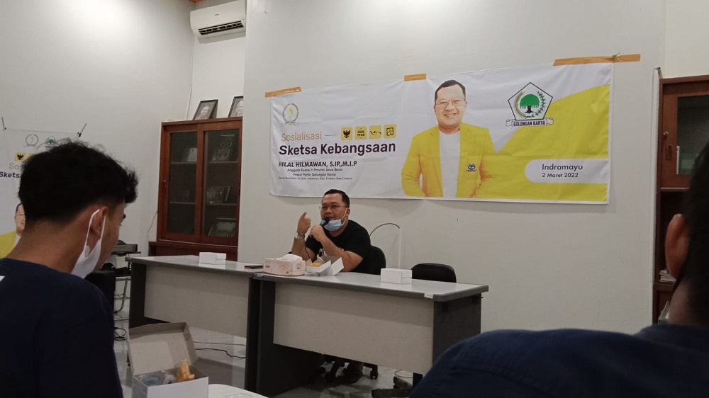 INDRAMAYU, INFOPARLEMEN.COM – Hilal Hilmawan SIp MIp, Anggota DPRD Jawa Barat, Dapil Jawa Barat XII (Kabupaten Cirebon, Kota Cirebon dan Kabupaten Indramayu) melaksanakan kegiatan sosialisasikan Empat Pilar Kebangsaan kepada kalangan mahasiswa dan pelajar di Gedung Dewan Pendidikan Indramayu, Jalan RA Kartini, Kecamatan Indramayu, Kabupaten Indramayu, Rabu (2/3/2022).
