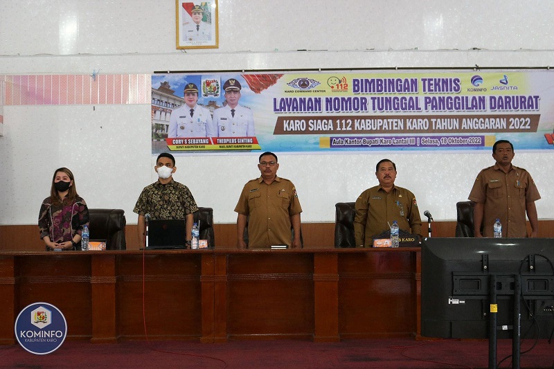 KARO, INFOPARLEMEN.COM – Sekretaris Daerah (Sekda) Kabupaten Karo Drs. K. Terkelin Purba, M.Si membuka Bimbingan Teknis (Bimtek) Layanan Nomor Tunggal Panggilan Darurat Karo Siaga 112 Kabupaten Karo Tahun Anggaran 2022 di Aula Kantor Bupati Karo, Kabanjahe, Selasa (18/10/2022).
