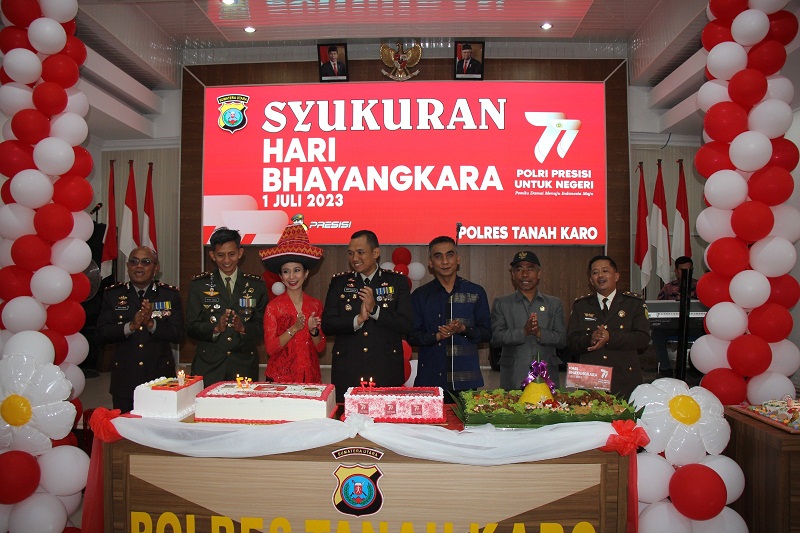 Di hari yang sama juga dilaksanakan acara syukuran hari Bhayangkara ke-77. Mewakili Forkopimda Kabupaten Karo, Wakil Bupati Karo Theopilus Ginting turut mengucapkan selamat hari Bhayangkara ke 77 kepada Polri khususnya Polres Tanah Karo.