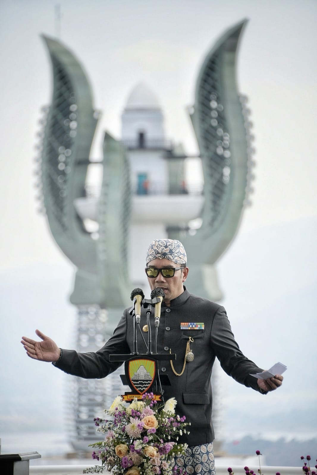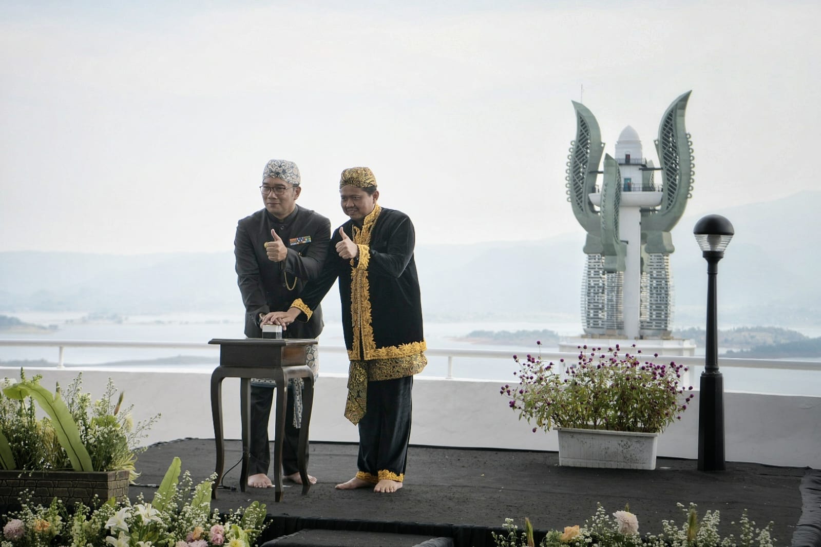 Gubernur Jawa Barat Ridwan Kamil meresmikan Menara Kujang Sapasang di kawasan Bendungan Jatigede, Desa Jemah, Kecamatan Jatigede, Kabupaten Sumedang. (Foto: Hms Jabar)