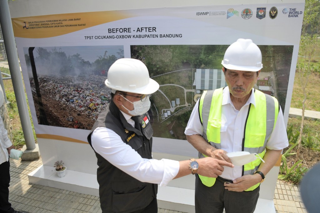 Gubernur Jawa Barat Ridwan Kamil mendampingi Menko Marves melakukan kunjungan kerja meninjau Tempat Pengelolaan Sampah Terpadu (TPST) Oxbow Cicukang, Kabupaten Bandung, Selasa (29/8/2023).(Foto: Biro Adpim Jabar)