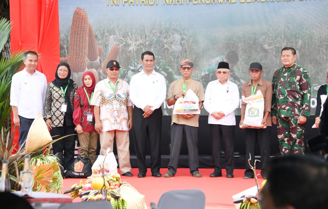 “Hari ini saya bersama Menteri Pertanian, Kapolri, Panglima TNI, dan Pj. Gubernur Jabar melakukan Kick off Gerakan Ketahanan Pangan Nasional yang merupakan jawaban terhadap masalah pangan yang dihadapi dunia,” ucap Wapres.