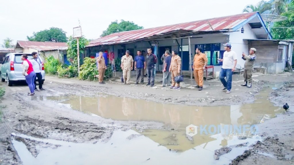 Wakil Bupati Karo Theopilus Ginting meninjau langsung kerusakan jalan yang merupakan akses jalan utama penghubung antara Desa Limang-Desa Kuta Gerat. (Foto: Diskominfo)