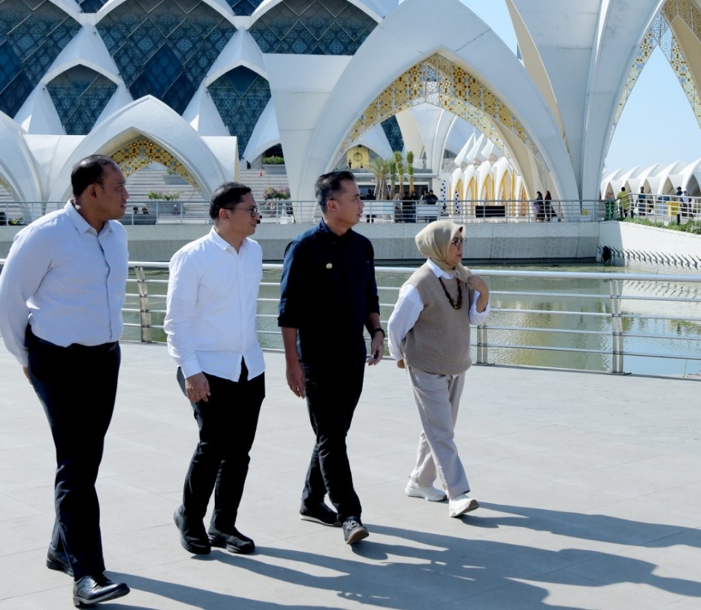 Penjabat Gubernur Jabar Bey Machmudin didampingi Kepala Dinas Perumahan dan Permukiman Jabar Indra Maha mengecek Masjid Raya Al Jabbar.