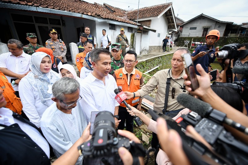 Kepala Pelaksana Harian Badan Penanggulangan Bencana Daerah (BPBD) Jawa Barat Dani Ramdan saat mendampingi Penjabat Gubernur Jabar Bey Machmudin meninjau Kabupaten Sumedang pascagempa.