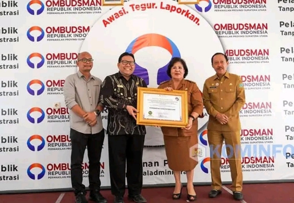 Penghargaan tersebut diserahkan secara langsung oleh Pjs. Kepala Perwakilan Ombudsman RI Provinsi Sumatera Utara, James Marihot Panggabean pada acara penganugerahan predikat kepatuhan standar pelayanan publik 2023 di 34 Pemerintah Daerah se Provinsi Sumatera Utara bertempat di Kantor Ombudsman RI Perwakilan Provinsi Sumatera Utara di Medan, Selasa (23/01/2024).