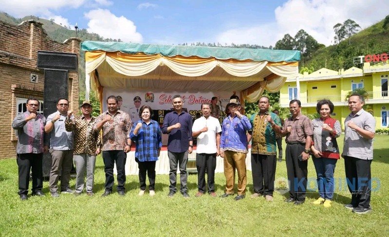 Bupati dan Wakil Bupati Karo turut serta dalam acara sosialisasi kebijakan pengelolaan keuangan desa yang digelar di Desa Tongging. (Foto: Diskominfo)