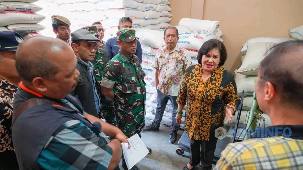 Bupati Karo Cory Sriwaty Sebayang melakukan operasi pasar guna meninjau ketersediaan bahan pokok, terutama beras. (Foto: Diskominfo)