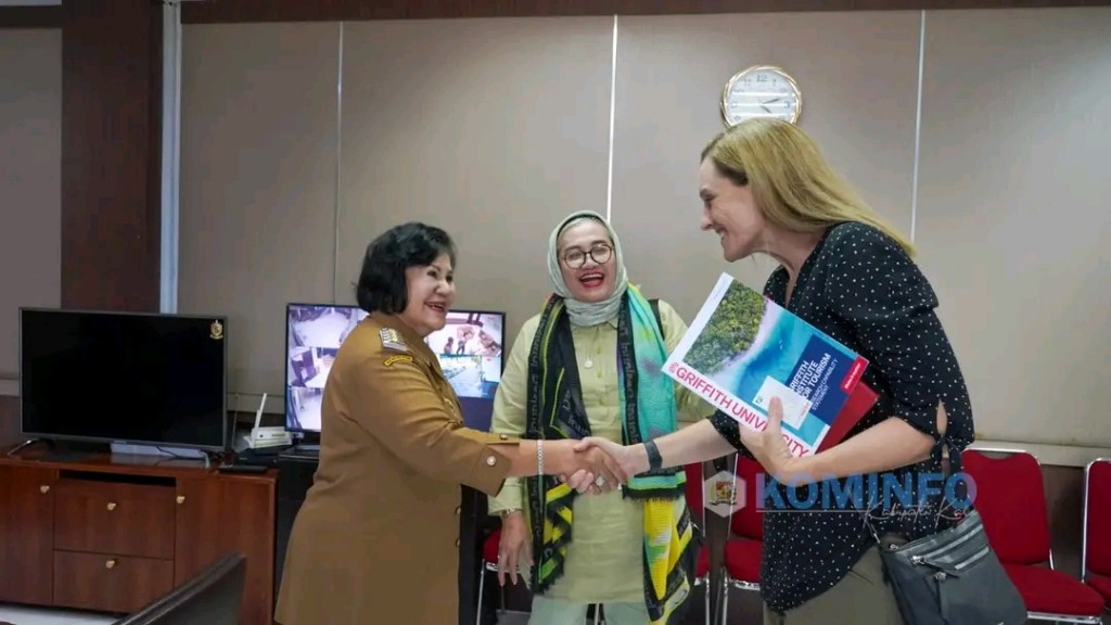 Bupati Karo Cory Sriwaty Sebayang menerima kunjungan Prof. Ir. Nurlisa Ginting, M. Sc. PHd. IPM, Kepala Pusat Unggulan IPTEK Pariwisata Berkelanjutan USU dan Prof. Sarah Gardiner perwakilan Griffith University Institute For Tourism Australia. (Foto: Diskominfo)
