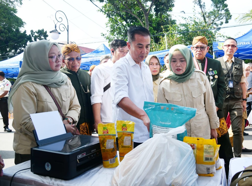 Penjabat Gubernur Jawa Barat Bey Machmudin menghadiri kegiatan Operasi Pasar Bersubsidi (Opadi) di Jalan R. Syamsudin, Kota Sukabumi, Senin (1/4/2024).(Foto: Yogi Prayoga/Biro Adpim Jabar)