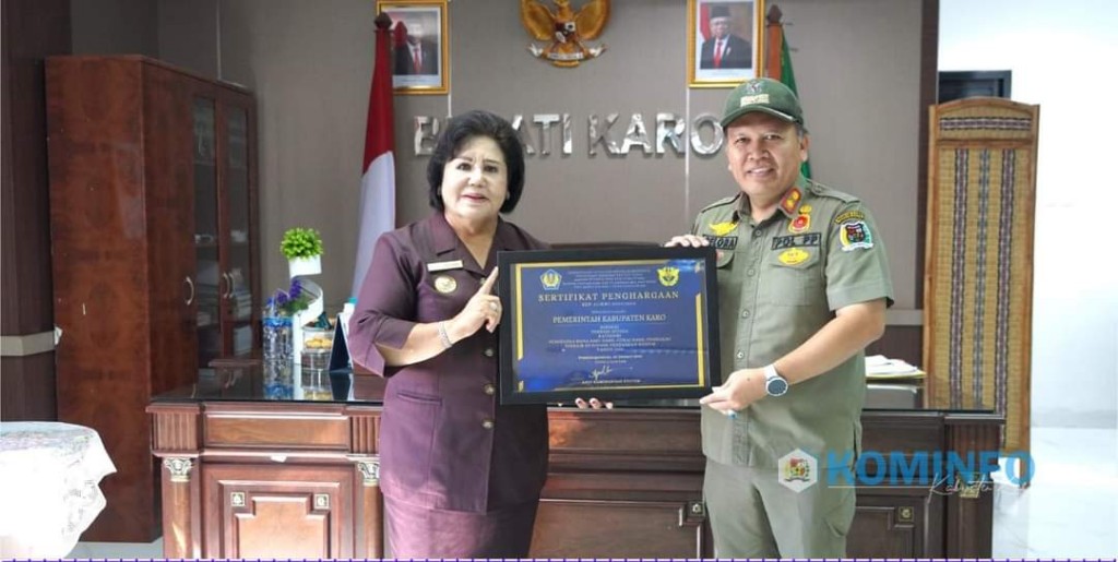 Penghargaan yang telah diterima oleh Kepala Satuan Polisi Pamong Peraja Kab. Karo, Gelora Fajar Purba, SH, MH, kemudian diserahkan kepada Bupati Karo Cory Sriwaty Sebayang di ruang kerja Bupati Karo, Kabanjahe ( 22/04/24).