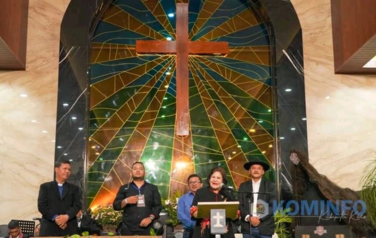 Bupati Karo Cory Sriwaty Sebayang hadir dalam acara Pentas Seni dan Budaya Gereja HKBP Kabanjahe di gedung Gereja HKBP Jl. Irian, Kabanjahe. (Foto: Diskominfo)