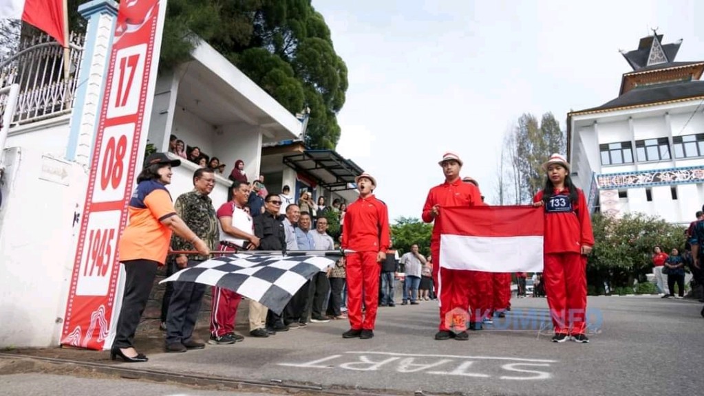Bupati Karo Cory Sebayang melepas peserta gerak jalan menyambut HUT Ke-79 Kemerdekaan RI.