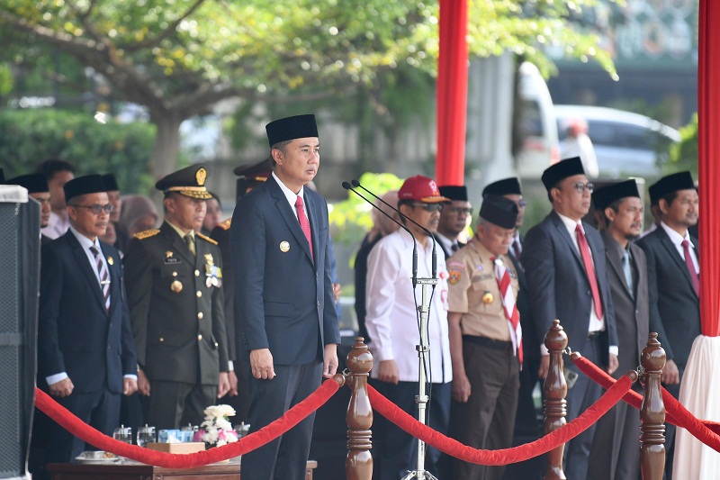 Pj Gubernur Jawa Barat Bey Machmudin memimpin upacara peringatan Hari Kesaktian Pancasila Tahun 2024 di Lapangan Gasibu, Kota Bandung, Selasa (1/10/2024).(Foto: Biro Adpim Jabar)