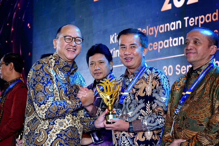 Penjabat (Pj.) Gubernur Jabar Bey Machmudin menerima penghargaan yang diserahkan Menteri Investasi/Kepala Badan Koordinasi Penanaman Modal (BKPM) Rosan Roeslani dalam Anugerah Layanan Investasi (ALI) 2024.