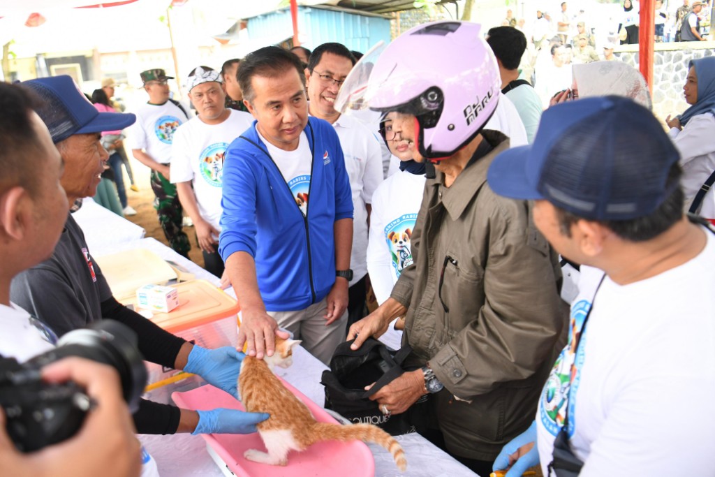 Penjabat Gubernur Jawa Barat Bey Machmudin menghadiri Peringatan World Rabies Day (WRD) di Lapangan Cisaat, Kabupaten Sukabumi.