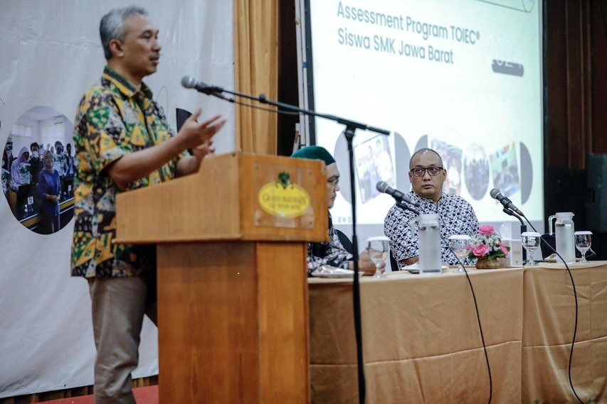 Bandung, Infoparlemen.com – Dinas Pendidikan (Disdik) Jawa Barat (Jabar) melalui Bidang Pembinaan Sekolah Menengah Kejuruan (PSMK) menggelar Sosialisasi Pelatihan & Sertifikasi Komunikasi Siswa SMK melalui Test of English International Communication (TOEIC) di Grand Pasundan Kota Bandung, Jumat (1/11/2024). Sosialisasi tersebut diikuti 52 SMK dari 27 kabupaten/kota di Jabar.