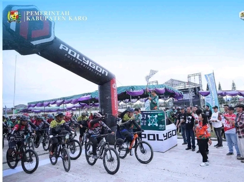 Wakil Bupati Karo, Komando Tarigan, SP., melepas 800 Peserta Karo Tour de Sinabung X Tahun 2025. (Foto: Diskominfo)