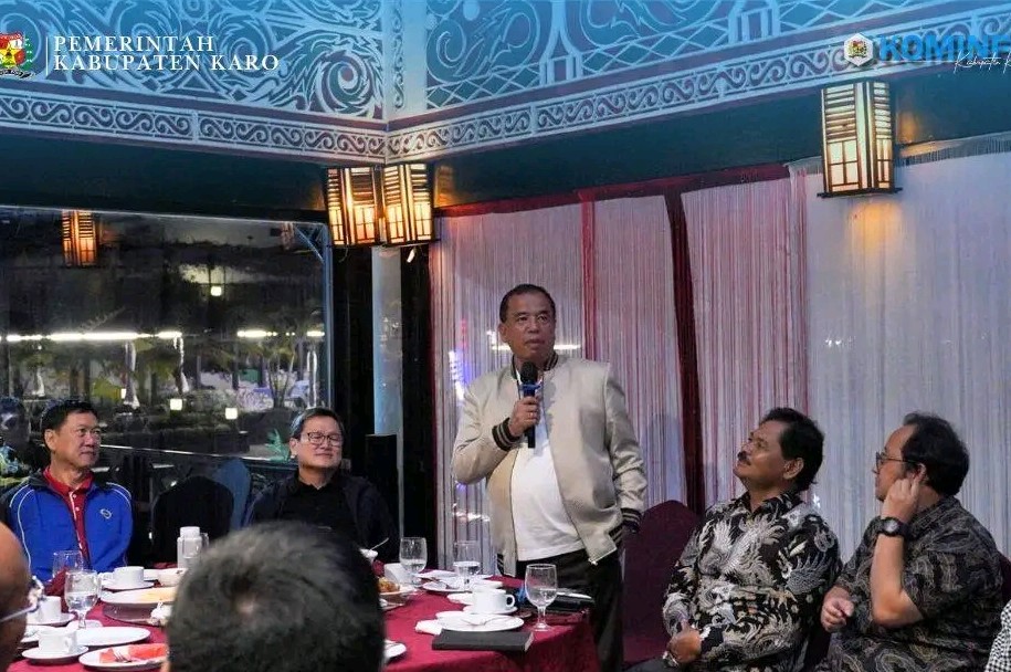 “Pemerintah Kabupaten Karo menyambut baik kehadiran para investor di Tanah Karo dengan memberikan kemudahan perizinan, menjamin keamanan investasi, serta mendorong kolaborasi dengan masyarakat lokal,” ujar Bupati Antonius Ginting dalam diskusi bersama para pelaku usaha yang tergabung dalam APINDO dan APPUHK di Lounge Hotel Sibayak Internatiional Berastagi, Senin (13/10/2025).