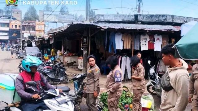 Satuan Polisi Pamong Praja (Satpol PP) Kabupaten Karo melaksanakan kegiatan penertiban pedagang kaki lima. (Foto: Info selengkapnya