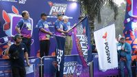 Penjabat Gubernur Jawa Barat Bey Machmudin mengangkat bendera (flag off) Pospay Run 2024_ dalam rangka Info selengkapnya